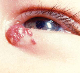 Hemangiomas can be on the eyelids, the surface of the eye, or in the eye socket. When that happens, the hemangioma may interfere with the normal development of the eye. It can also lead to vision problems, including amblyopia and glaucoma.